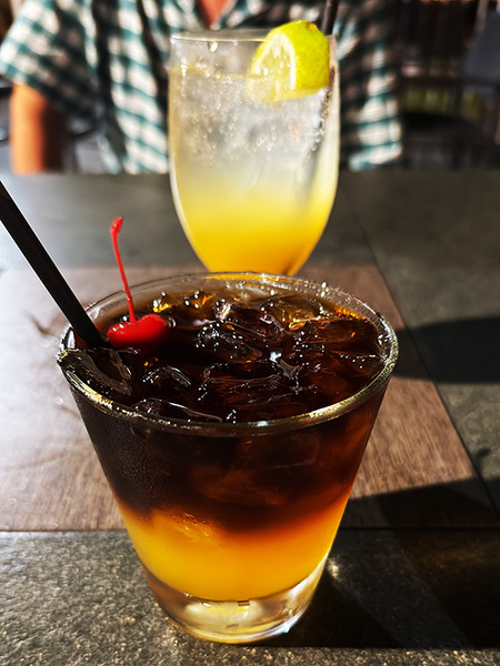 マイタイとリリコイスカッシュ。日も落ちたヒロ湾。シルエットはココナッツアイランド。ハワイ語で「モク・オラ」といいます。癒しの聖地と呼ばれてい···